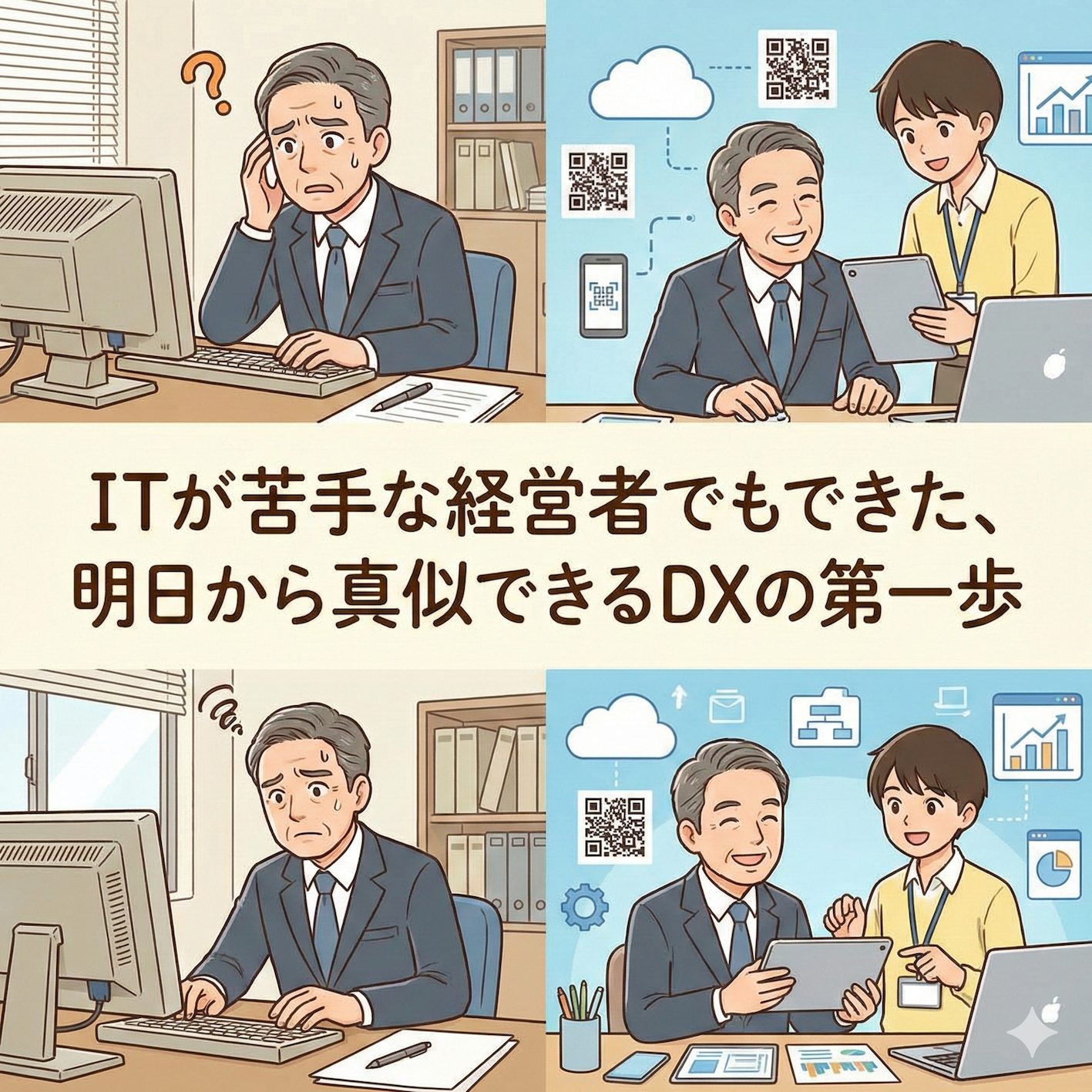 「DX(デジタルトランスフォーメーション)という言葉は聞くけれど、うちにはまだ早い」「ITは苦手だし、お金もかかりそう……」。そんな風に思っていませんか?